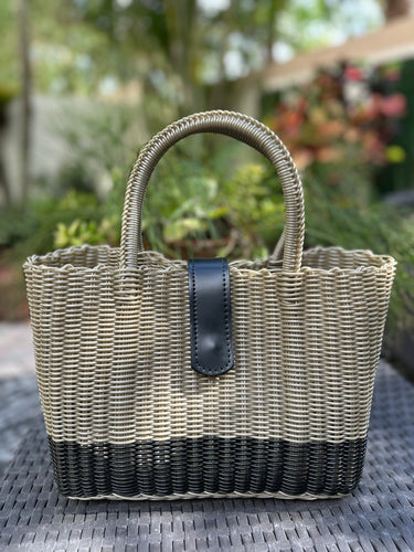 Mini Black Tote Bag / Black Magnetic Leather Snap Closure Coming back soon!!!