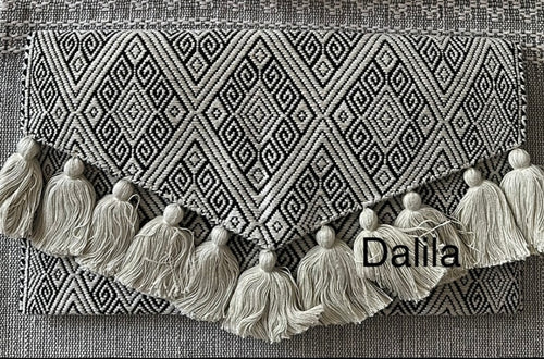 New Dalila handcrafted embroidered clutch purse with off white tassels